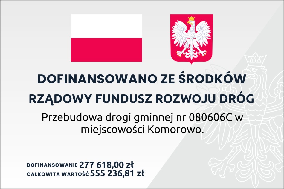W maju bieżącego roku zakończono projekt pn. "Przebudowa drogi gminnej nr 080606C w miejscowości Komorowo".