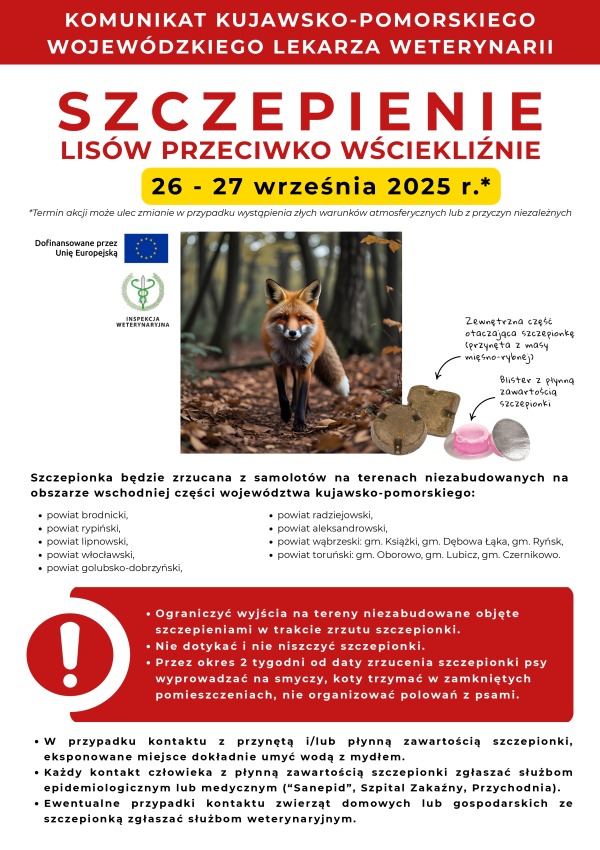 - ograniczyć wyjścia na tereny niezabudowane objęte szczepieniami w takcie zrzutu szczepionki tj. 26-27 września 2025 r.